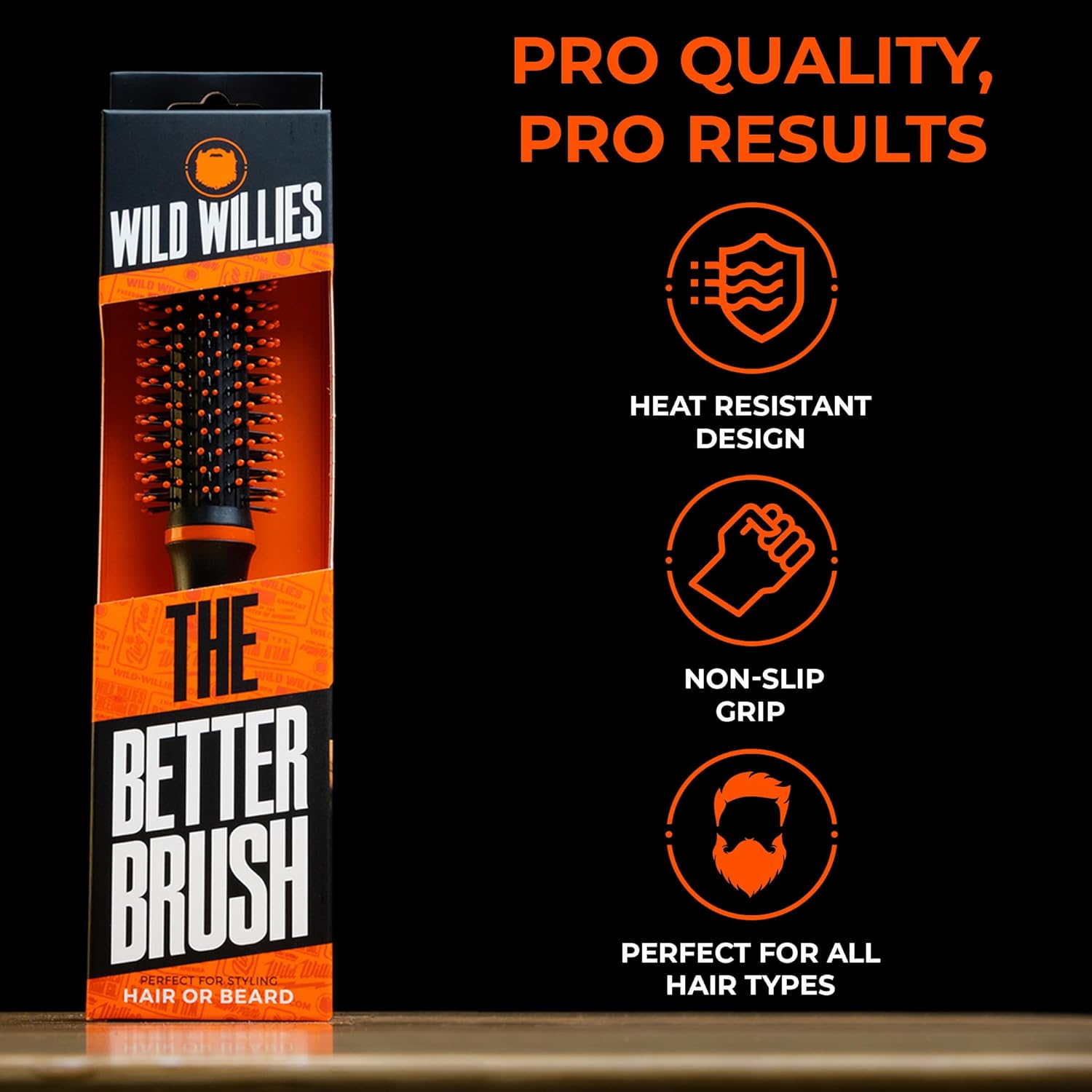 Wild Willies Round Beard Brush, The Better Brush – Round Bristle Beard Hair Brush for Men, Heat-Resistant Curling Comb for Blow Drying – Premium Grooming Tool for Styling Hair or Beard, All Hair Types
