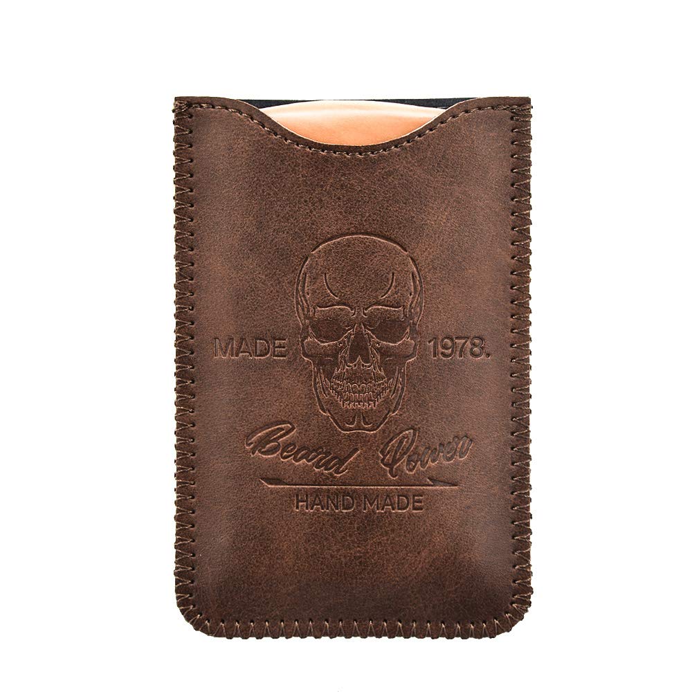 Wooden Beard Comb with Brown Skull Design for Men, Fine & Coarse Teeth, Travel Pocket Comb for Beards & Mustaches & Hair, Includes Vegan Leather Case
