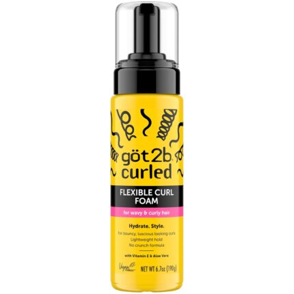 Got2B Curled Flexible Curl Foam, 6.7 Fl Oz, Hair Mousse for Frizz Control and Heat Protection, Lightweight Hold, No-Crunch Definition for Wavy & Curly Hair Styling, Aloe Vera & Vitamin E Infused