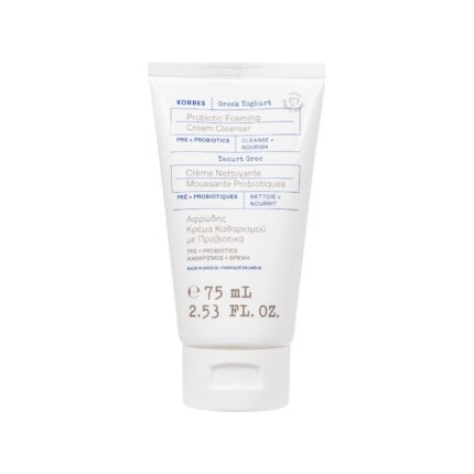 KORRES Greek Yoghurt Foaming Cream Cleanser, Hydrating, Deep Cleansing Skin Care, Makeup Remover, Face Wash for Women, Cream to Foam Facial Cleanser for Dry, Oily, Sensitive, Any Skin Type, 2.5 fl oz