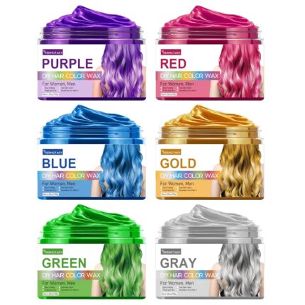 Permotary 6 Colors Temporary Hair Color Wax Styling Cream Mud, Temporary Hair Dye Wax Great for Party, Cosplay, Halloween,Fancy Dress, In Total Capcity 25.38 OZ (6 Colors)