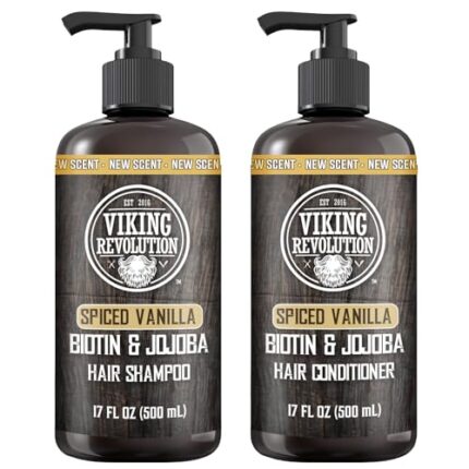 Viking Revolution Spiced Vanilla Mens Shampoo and Conditioner Set with Biotin and Jojoba Oil – Natural Hair Shampoo and Hair Conditioner for Men with Vitamin B5 – Mens Shampoo for Thinning Hair (17Oz)