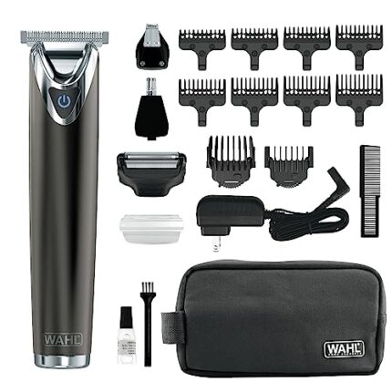 Wahl USA Stainless Steel Lithium Ion 2.0+ Slate Beard Trimmer for Men – Electric Shaver, Nose Ear Trimmer, Rechargeable All in One Men’s Grooming Kit – Model 9864