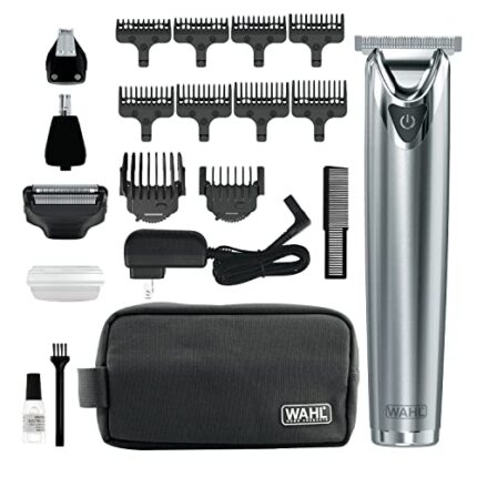 Wahl USA Stainless Steel Lithium Ion 2.0+ Beard Trimmer for Men – Electric Shaver & Nose Ear Trimmer – Rechargeable All in One Men’s Grooming Kit – Model 9864SS