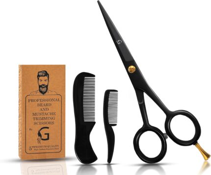 5” Professional Beard Mustache Scissors with 1 Beard Comb, 1 Mustache Comb – Prefect Mustache Trimming Scissors for All Facial Hair – Grooming Scissors for Men